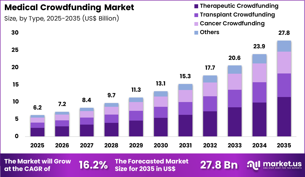 Increased awareness of crowdfunding success stories is projected to encourage more patients to initiate campaigns. As financial barriers to healthcare remain a concern globally, therapeutic crowdfunding is estimated to maintain its dominant position in this market.