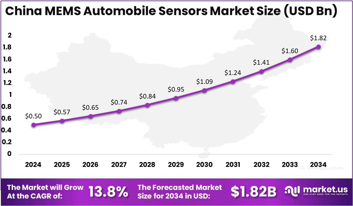 - Market Growth: The MEMS Automobile Sensors Market is projected to grow from USD 3.96 billion in 2024 to USD 15.74 billion by 2034, at a robust CAGR of 14.80%.