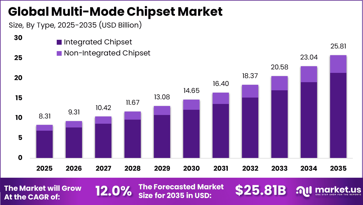 Global Multi-Mode Chipset Market Size, Share and Analysis By Type (Integrated Chipset, Non-Integrated Chipset), By Device (Smartphones, Tablets, Wearable Devices, Internet Of Things), By Communication (Second-Generation, Third Generation, Fourth Generation, Fifth Generation), By Application (Consumer Electronics Automotive, Healthcare, Industrial, Other Applications) , By Regional Analysis, Global Trends and Opportunity, Future Outlook By 2025-2035