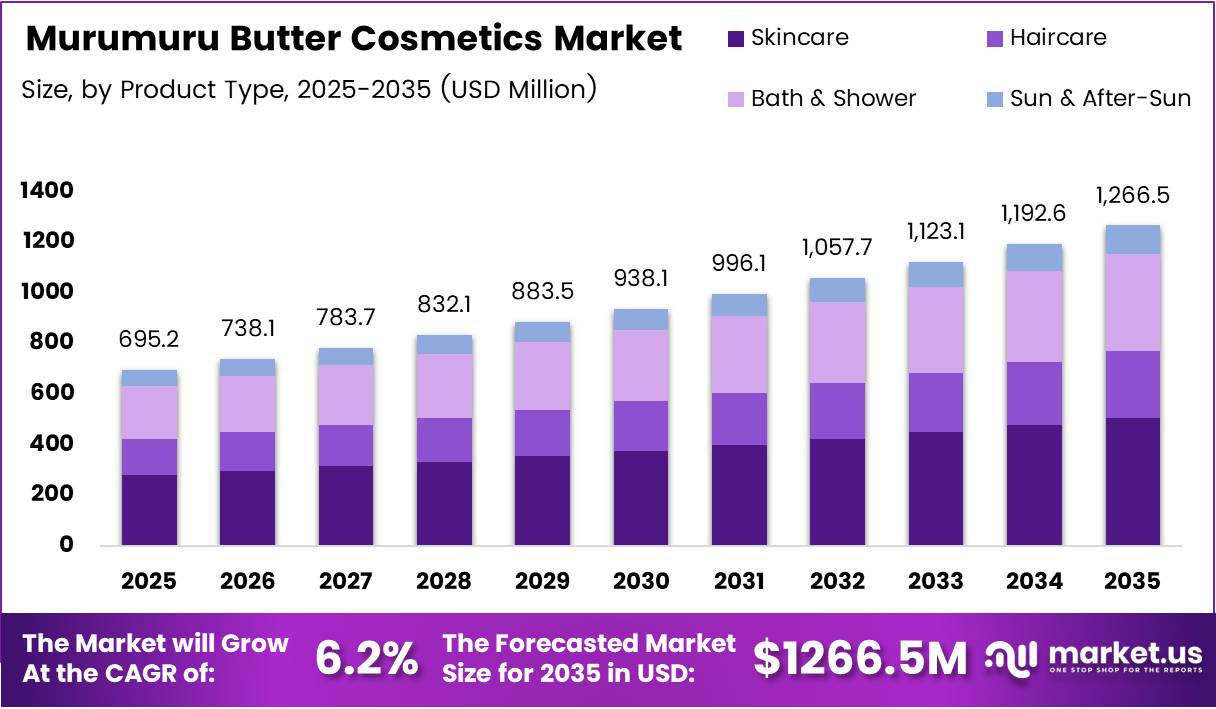 Global Murumuru Butter Cosmetics Market size is expected to be worth around USD 1,266.5 Million by 2035 from USD 695.2 Million in 2025, growing at a CAGR of 6.2% during the forecast period 2026 to 2035.
