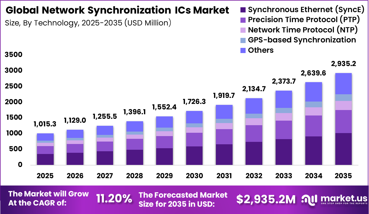 Global Network Synchronization ICs Market Size, Share and Analysis Report By Technology (Precision Time Protocol (PTP),Network Time Protocol (NTP), Synchronous Ethernet (SyncE), GPS-based Synchronization, Others), By Application (5G Networks, Cloud Computing, IoT (Internet of Things), Edge Computing, Smart Grids and Energy Networks, Others), By Vertical (IT and Communication, Consumer Electronics, Industrial Application, Data Centers, Other Applications), By Regional Analysis, Global Trends and Opportunity, Future Outlook By 2025-2035
