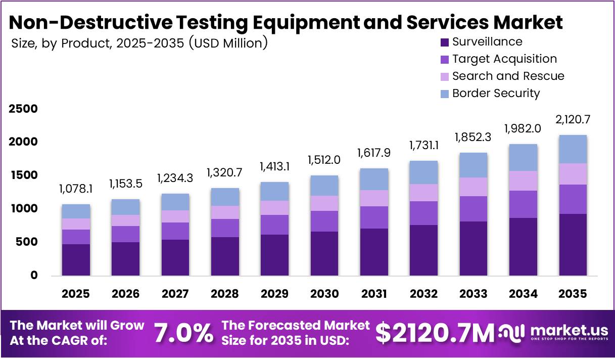 Global Non-Destructive Testing Equipment and Services Market size is expected to be worth around USD 2,120.7 Million by 2035 from USD 1,078.1 Million in 2025, growing at a CAGR of 7.0% during the forecast period 2026 to 2035.
