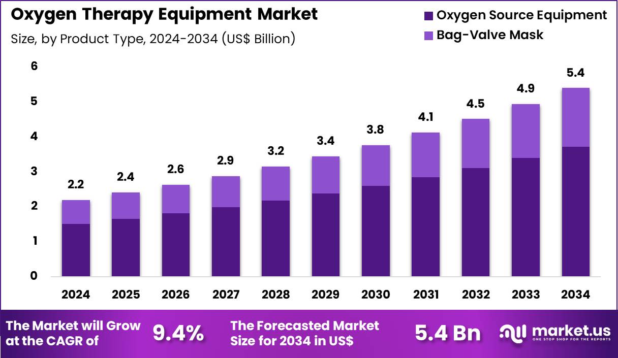Global Oxygen Therapy Equipment Market By Product Type (Oxygen source equipment and Bag-valve mask), By Portability (Stationary devices and Portable devices), By Application (COPD, Asthma, Pneumonia, Cystic fibrosis and Others), By End-user (Hospitals & clinics, Home care settings, Ambulatory surgical centers and Others), Region and Companies – Industry Segment Outlook, Market Assessment, Competition Scenario, Trends and Forecast 2025-2034