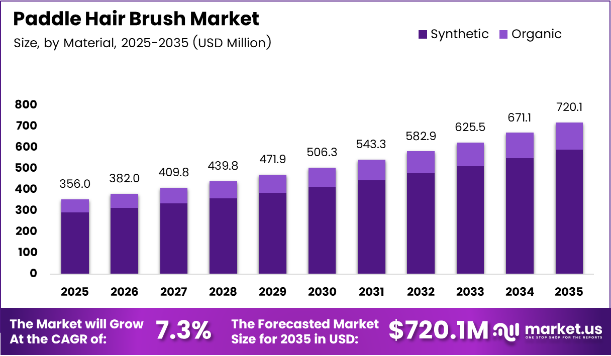 Global Paddle Hair Brush Market size is expected to be worth around USD 720.1 Million by 2035 from USD 356.0 Million in 2025, growing at a CAGR of 7.3% during the forecast period 2026 to 2035.