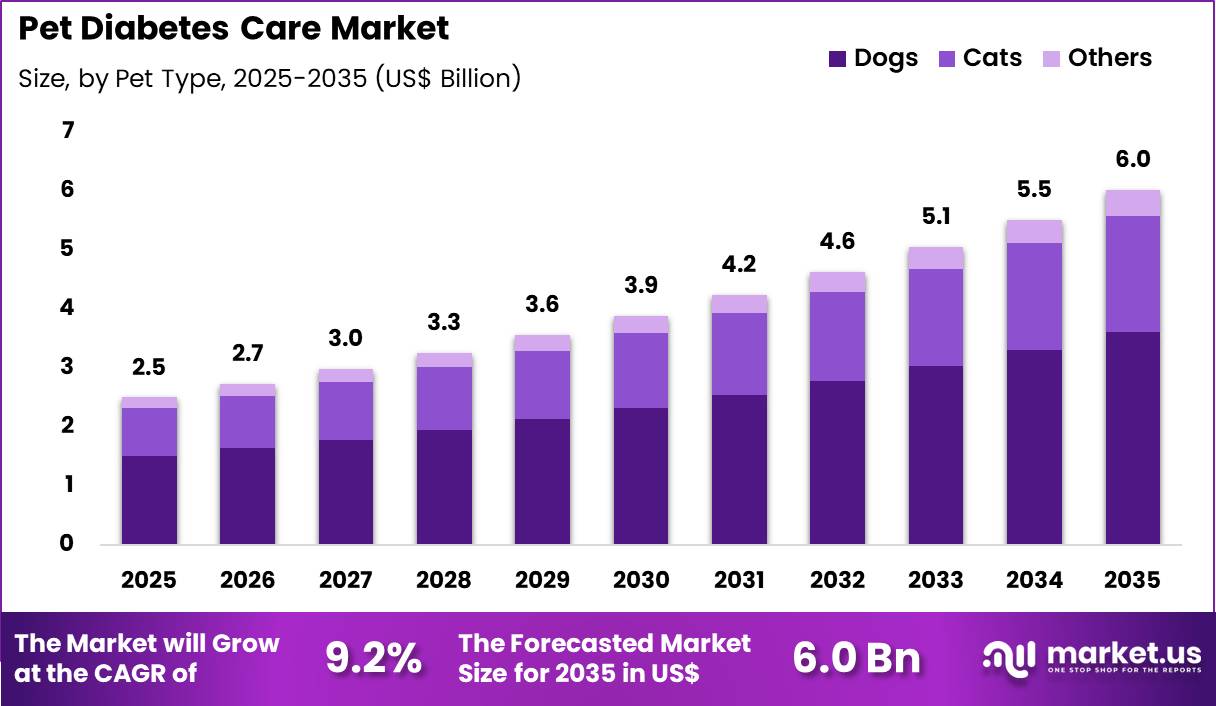 As dog ownership continues to rise globally and awareness of chronic pet diseases improves, this segment is anticipated to maintain its dominant share in the pet diabetes care market.