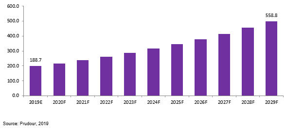 The global Polyurea Coating for Defense & Military Market is projected to be US$ 188.7Mn in 2019 to reach US$ 558.8 Mn by 2029 at a CAGR of 11.6%.
