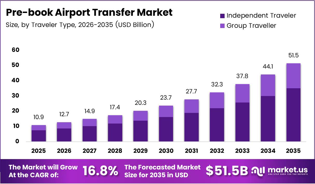 - Global Pre-book Airport Transfer Market projected to reach USD 51.5 Billion by 2035 from USD 10.9 Billion in 2025