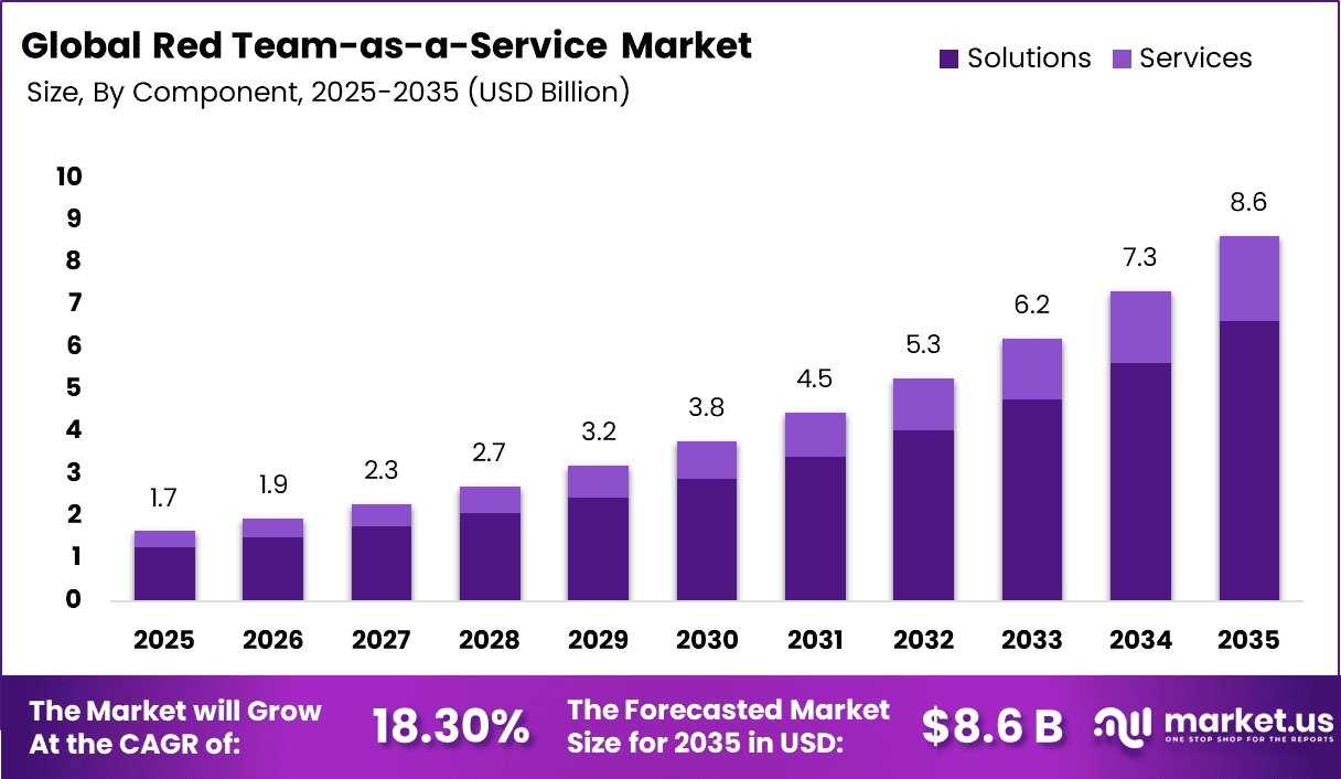 Key Restraint Impact on CAGR Forecast (~%) Geographic Relevance Impact Timeline Strategic Effect High cost of specialized red team services -2.2% Global Mid Term (2026–2032) Limits adoption among SMEs Shortage of skilled cybersecurity professionals -2.0% Global Mid Term (2026–2032) Delays service delivery Potential operational disruption during testing -1.8% North America, Europe Short to Mid Term (2025–2031) Creates hesitation among enterprises Data privacy and compliance concerns -1.7% Europe, North America Mid to Long Term (2026–2035) Restricts testing scope Limited awareness in emerging markets -1.5% Asia Pacific, Latin America Short to Mid Term (2025–2030) Slows adoption outside developed regions By Component Analysis