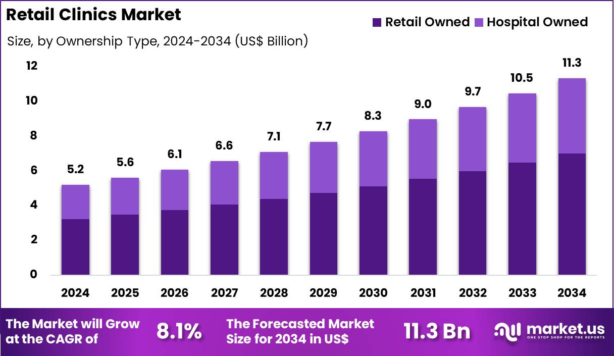 Patients prefer retail owned clinics for transparent pricing and minimal wait times, which increases visit frequency for minor illnesses and preventive care. These clinics focus on high-volume, low-complexity services that align well with walk-in demand patterns.