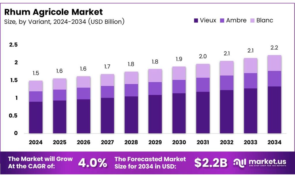 Global Rhum Agricole Market Size, Share, And Industry Analysis Report By Variant Type (Vieux, Ambre, Blanc), By Distribution Channel (Supermarkets and Hypermarkets, Specialty liquor stores, Duty Free Stores, Online Retail, Others), By End-Use (Food Service, Retail and Household), By Region and Companies - Industry Segment Outlook, Market Assessment, Competition Scenario, Trends, and Forecast 2025-2034