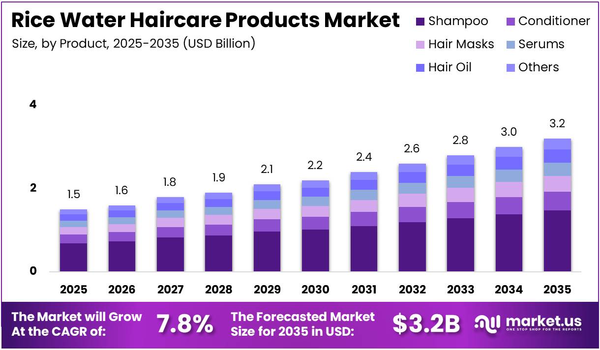 The Global Rice Water Haircare Products Market size is expected to be worth around USD 3.2 Billion by 2035 from USD 1.5 Billion in 2025, growing at a CAGR of 7.8% during the forecast period 2026 to 2035.