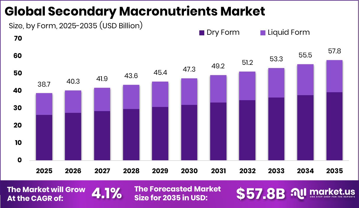 Dry form dominates the Secondary Macronutrients Market, holding 67.9% share globally.