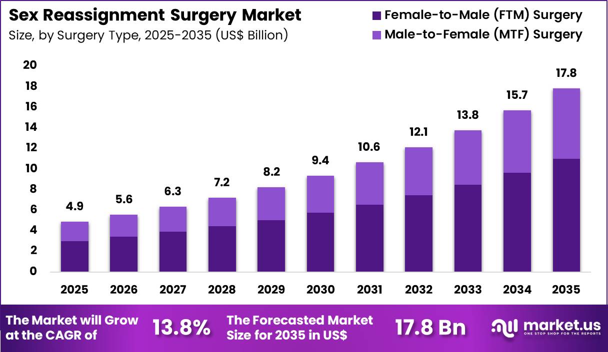 Mastectomy, or top surgery, accounted for 22.4% of growth within procedure type and dominates the sex reassignment surgery market because it is one of the most visible, high-priority, and frequently requested procedures in gender-affirming care.