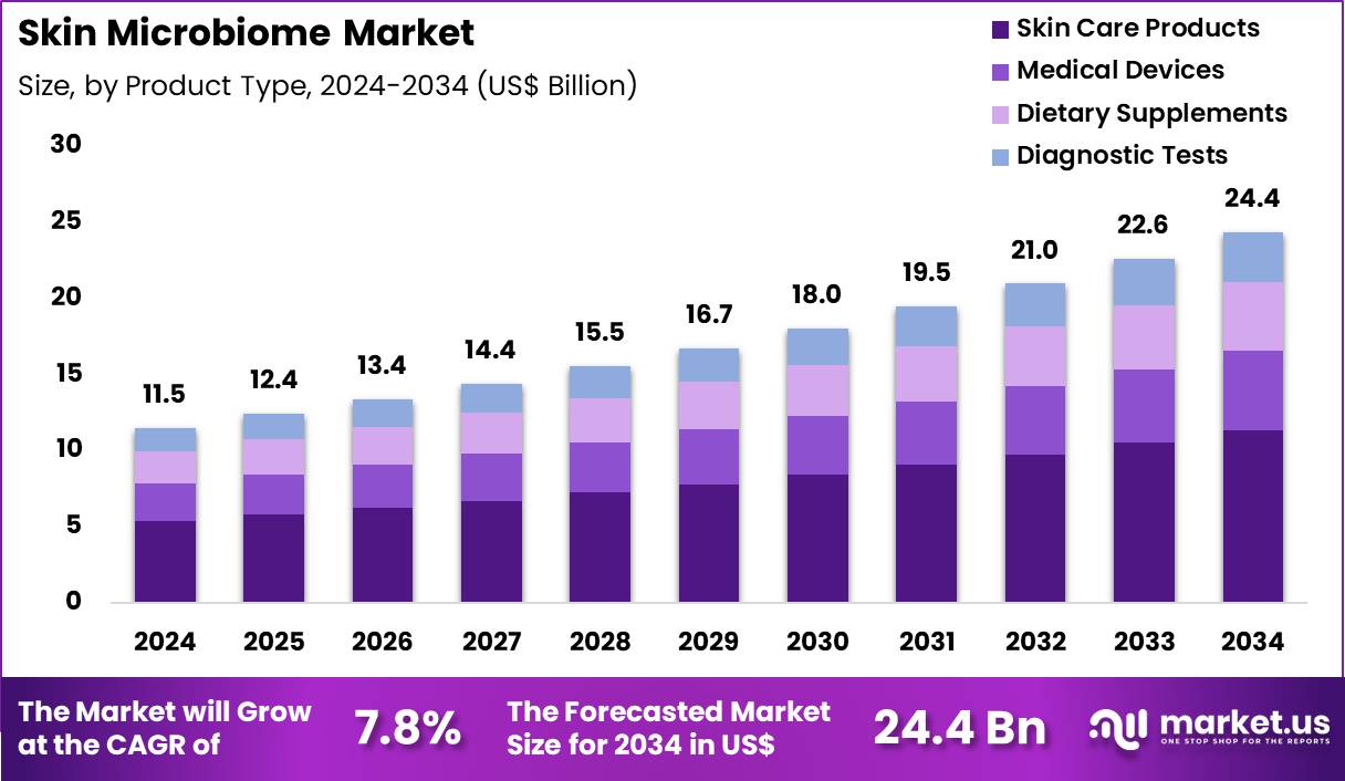 Global Skin Microbiome Market By Product Type (Skin Care Products, Medical Devices, Dietary Supplements and Diagnostic Tests), By Skin Type (Normal, Dry, Oily and Combination), By Disease (Acne Vulgaris, Psoriasis Vulgaris, Atopic Dermatitis and Rosacea), Region and Companies – Industry Segment Outlook, Market Assessment, Competition Scenario, Trends and Forecast 2025-2034