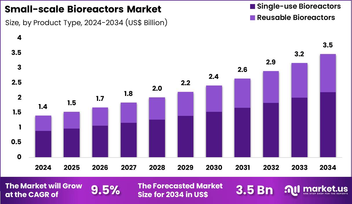 Global Small-scale Bioreactors Market By Product Type (Single-use Bioreactors and Reusable Bioreactors), By Capacity (1 L to 3 L, 500 mL to 1 L, 5 mL to 100 mL, 3 L to 5 L, 250 mL to 500 mL and 100 mL to 250 mL), By End-Use (CROs & CMOs, Pharmaceutical & Biopharmaceutical Companies and Academic & Research Institutes), Region and Companies – Industry Segment Outlook, Market Assessment, Competition Scenario, Trends and Forecast 2025-2034