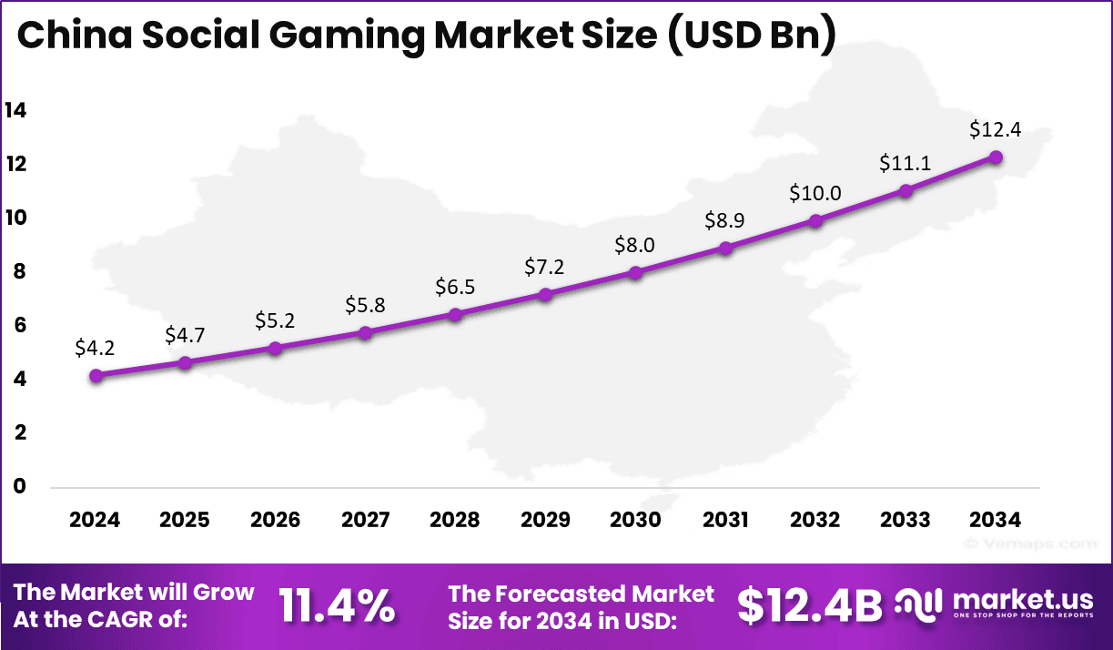 - Growth in China: The social gaming market in China is growing at a CAGR of 11.4%, indicating steady expansion in the region.