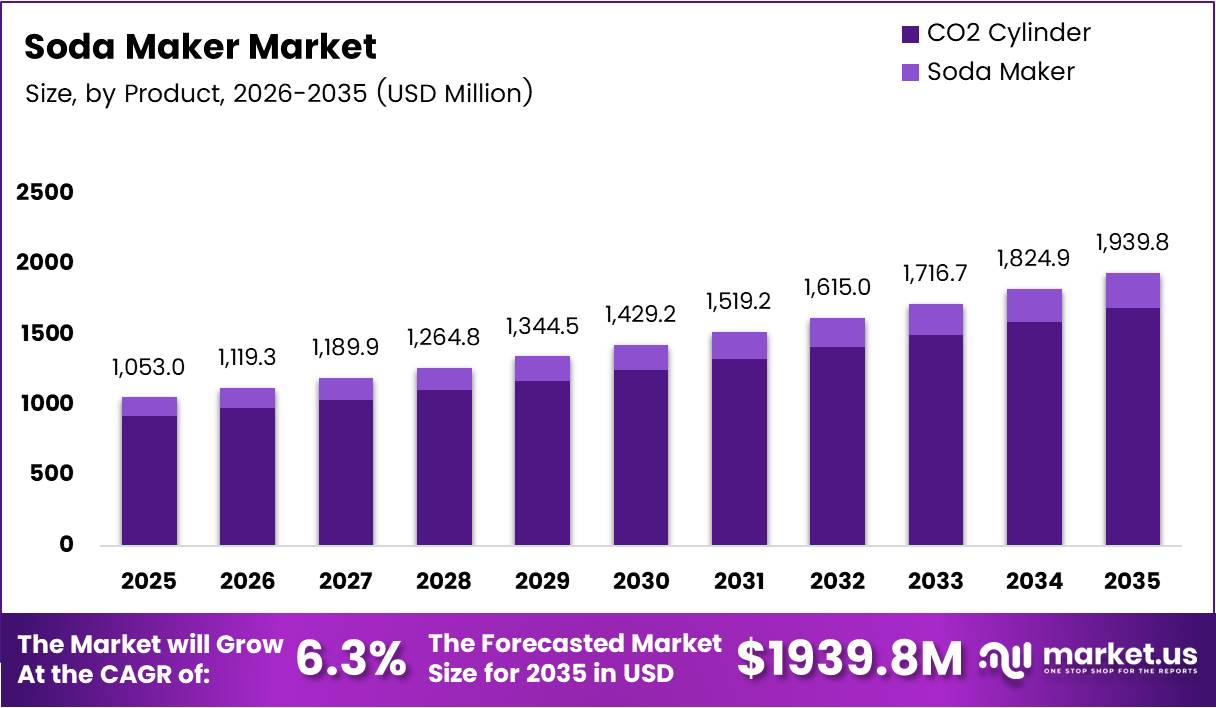 - Global Soda Maker Market valued at USD 1,053.0 Million in 2025, projected to reach USD 1,939.8 Million by 2035