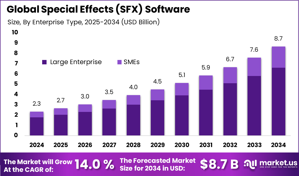 Global Special Effects (SFX) Software Market Size, Share Report Analysis By Component (Software, Services), By Deployment (Cloud, On-Premise), By Enterprise Type (SMEs, Large Enterprise), By Application (Movies, Television Shows, Gaming, Advertisement, Simulation, Others), By Regional Analysis, Global Trends and Opportunity, Future Outlook By 2025-2034