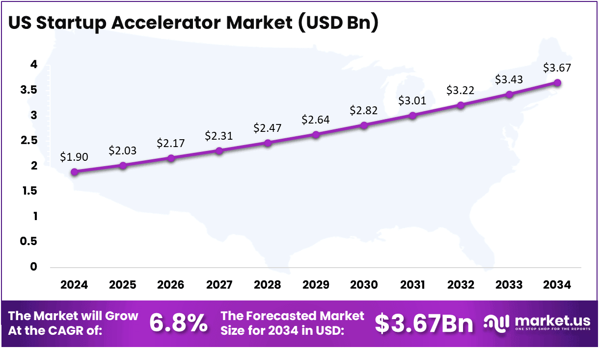 - US Market Value: The US Startup Accelerator Market is valued at USD 1.9 billion in 2024 and is poised for consistent growth.