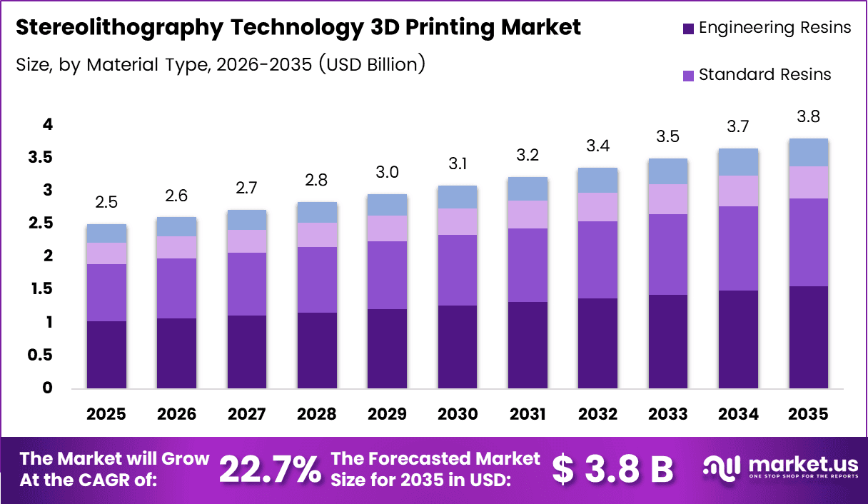 Global Stereolithography (SLA) Technology 3D Printing Market size is expected to be worth around USD 3.8 Billion by 2035 from USD 2.5 Billion in 2025, growing at a CAGR of 22.7% during the forecast period 2026 to 2035.