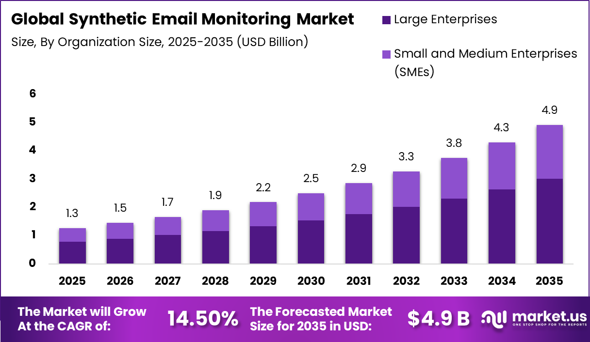 Large enterprises also face higher risks related to system outages and security breaches. Synthetic monitoring tools allow IT teams to proactively test system performance and identify weaknesses. As enterprise communication environments become more complex, large organizations remain the primary adopters of synthetic email monitoring platforms.