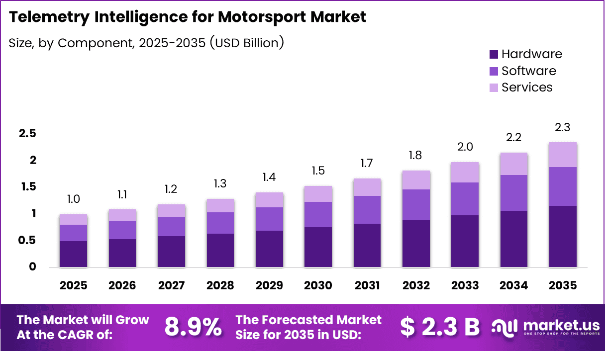 Global Telemetry Intelligence for Motorsport Market size is expected to be worth around USD 2.3 Billion by 2035 from USD 1 Billion in 2025, growing at a CAGR of 8.9% during the forecast period 2026 to 2035.