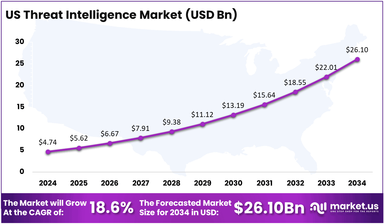 - U.S. Market: The U.S. accounts for USD 4.74 billion in market value, with a steady CAGR of 18.6%, reflecting consistent demand for advanced threat intelligence solutions.