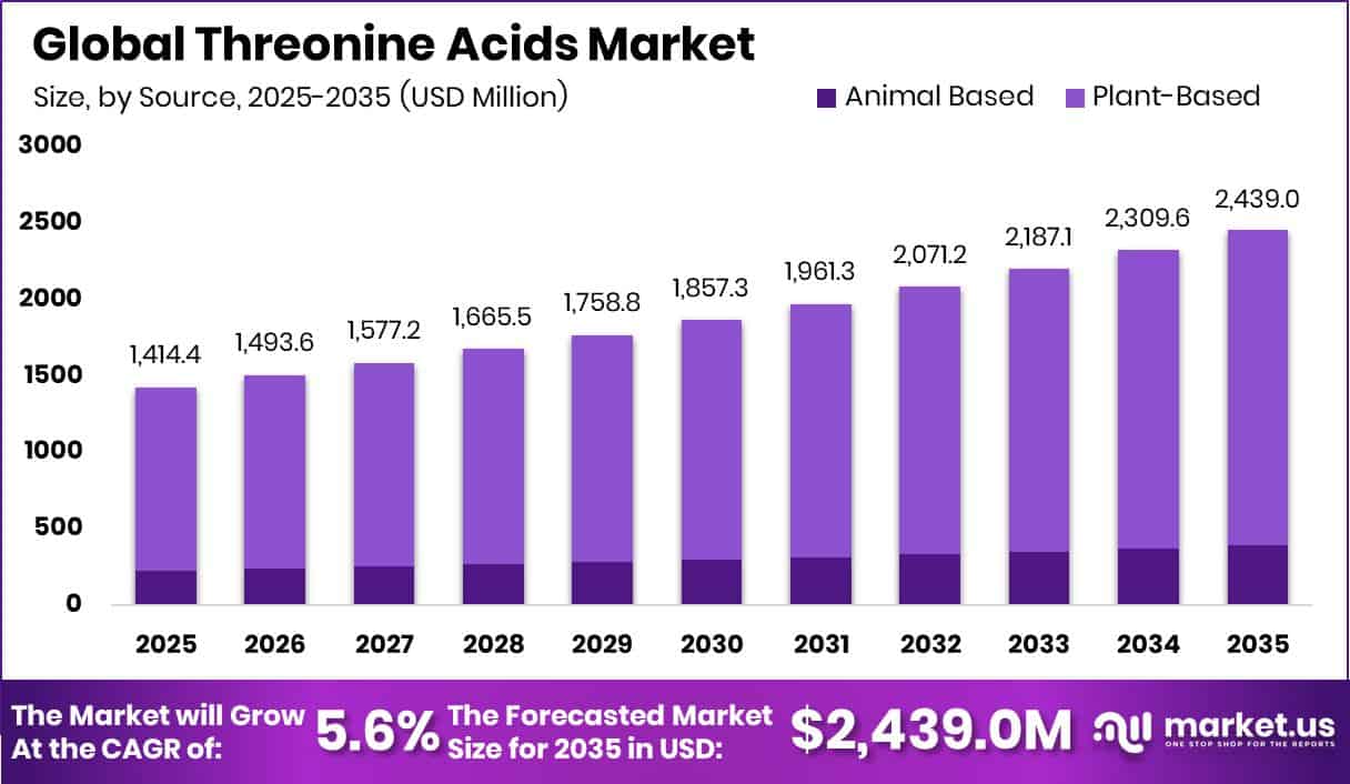 Threonine Acids Market by source shows plant-based dominance, accounting for 84.6% globally recently worldwide.