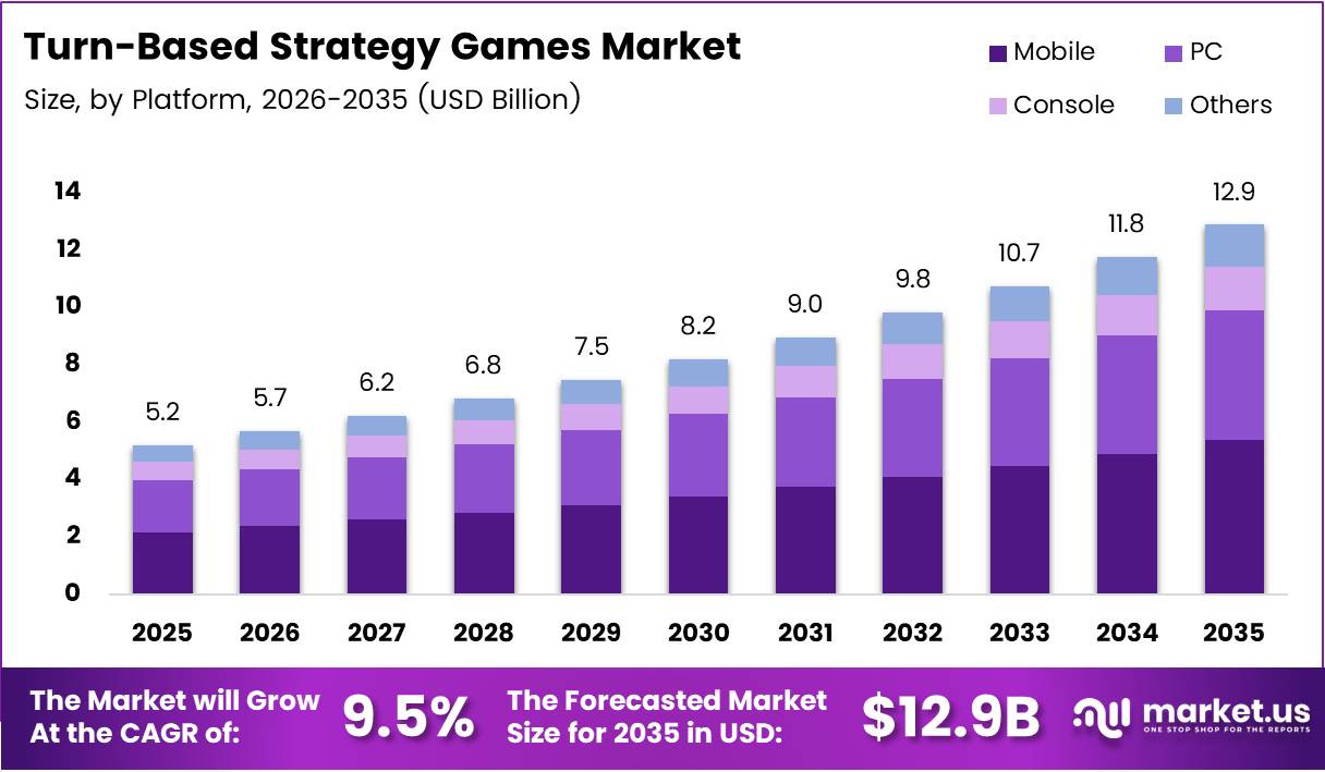 Global Turn-Based Strategy Games Market size is expected to be worth around USD 12.9 Billion by 2035 from USD 5.2 Billion in 2025, growing at a CAGR of 9.5% during the forecast period 2026 to 2035.