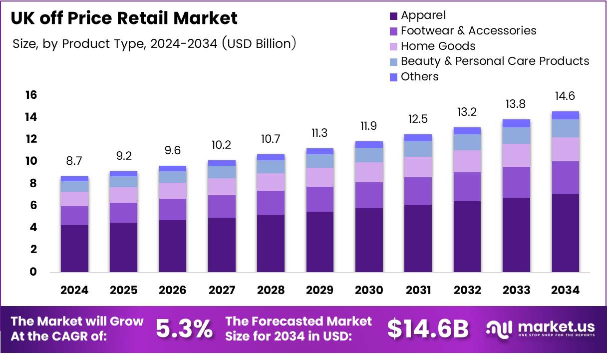 UK off Price Retail Market Size, Share, Growth Analysis By Product Type (Apparel, Footwear & Accessories, Home Goods, Beauty & Personal Care Products, Others), By Source of Inventory (Out of Fashion Stock by Brands, Returned Merchandise, Defective Product Inventory), By Age Group (18–25, 26–40, 56 and above), By End User (Individual/Household Consumers, Small Retailers, Institutional Buyers), By Region and Companies - Industry Segment Outlook, Market Assessment, Competition Scenario, Statistics, Trends and Forecast 2025-2034