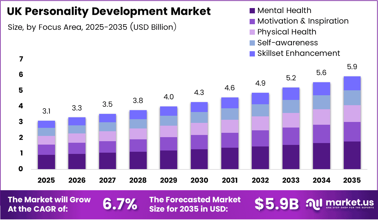 UK Personality Development Market size is expected to be worth around USD 5.9 Billion by 2035 from USD 3.1 Billion in 2025, growing at a CAGR of 6.7% during the forecast period 2026 to 2035.