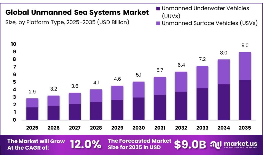 - The global unmanned sea systems market was valued at USD 2.9 billion in 2024.
