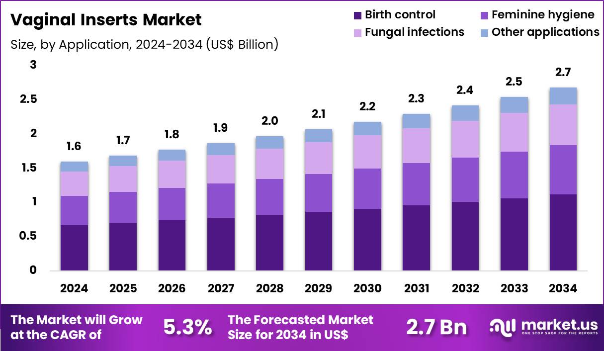 - Considering application, the market is divided into birth control, feminine hygiene, fungal infections and other applications. Among these, birth control held a significant share of 41.6%.