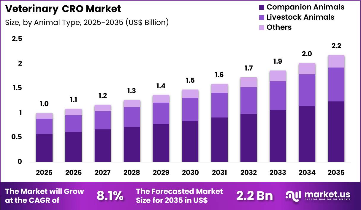 Rising companion animal populations and associated healthcare demands are driving the Veterinary CRO market.