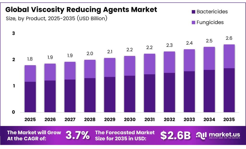 The Global Viscosity Reducing Agents Market size is expected to be worth around USD 2.6 billion by 2035 from USD 1.8 billion in 2025, growing at a CAGR of 3.7% during the forecast period 2026 to 2035.