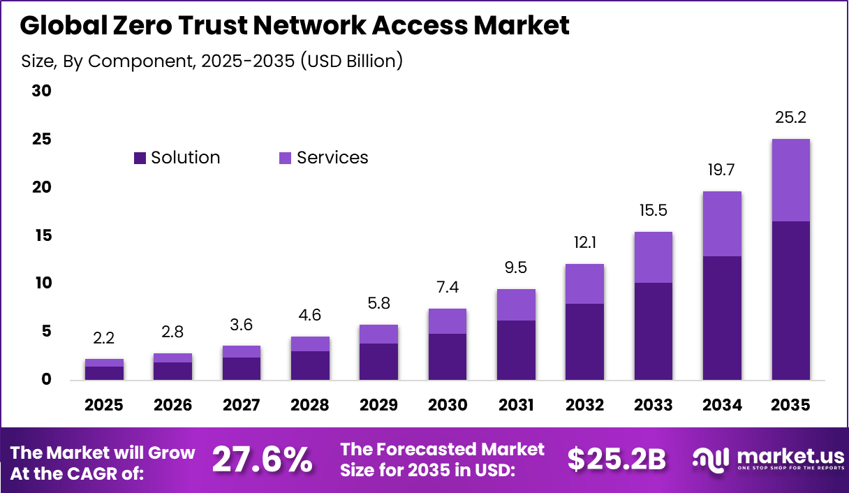 Global Zero Trust Network Access Market Size, Share and Analysis By Component (Solution, Services), By Deployment (Cloud, On-Premise, Hybrid), By Enterprise Size (Small & Medium Enterprises, Large Enterprises), By Application (Remote Access Security, Application Access Control, Secure Cloud Connectivity, Network Monitoring & Compliance, Others), By End Use (BFSI, IT and Telecommunications, Healthcare, Government & Defense, Retail & E-Commerce, Energy & Utilities, Education, Others), By Regional Analysis, Global Trends and Opportunity, Future Outlook By 2025-2035