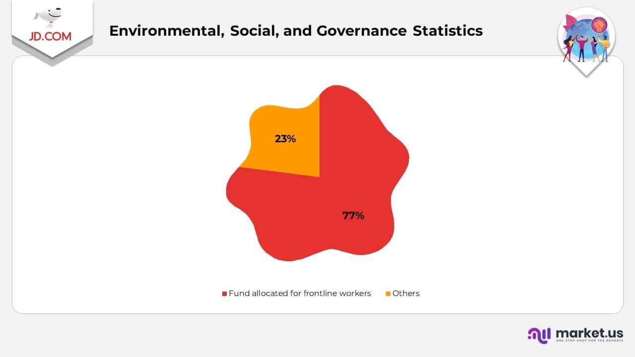 - As of 2023, 77% of the applicants for the fund have been frontline workers; JD.com offers support to these employees, which includes social insurance, educational assistance, and housing funds.