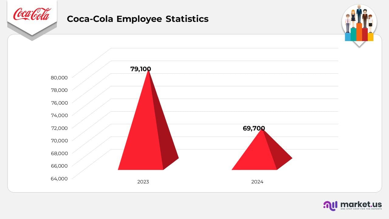 - As of December 31, 2024, and 2023, Coca-Cola Company had approximately 69,700 and 79,100 employees, respectively.