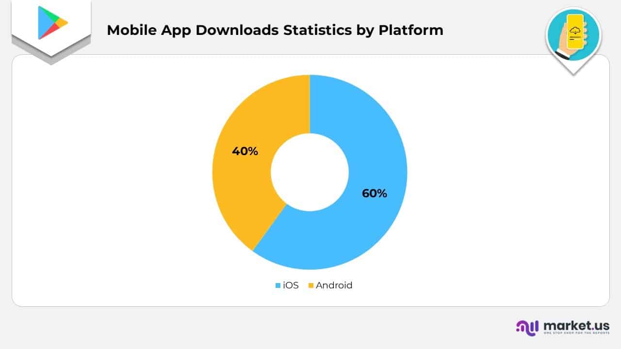 - Statistics on mobile app downloads indicate that Android leads in volume, commanding a 70% share of global mobile app downloads.