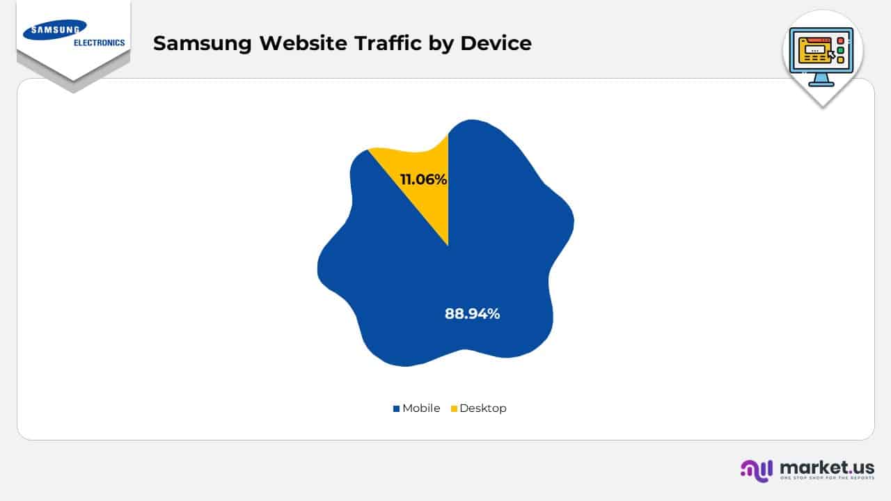- Globally, 88.94% of users are mobile Samsung users, while 11.06% are desktop users.