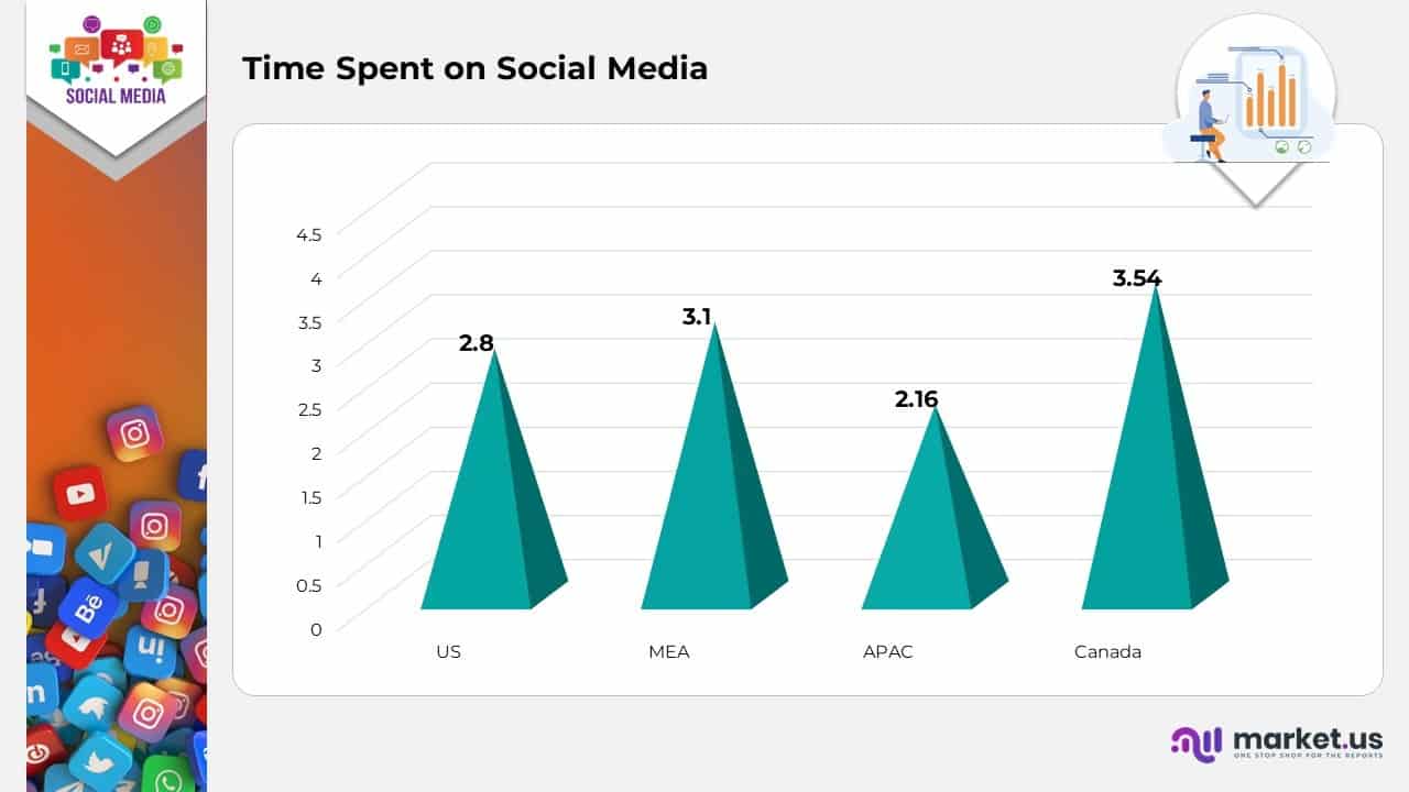 - Individuals in the Asia-Pacific (APAC) region spend about 2 hours and 16 minutes daily on social media, suggesting a more moderate usage level compared to other regions.