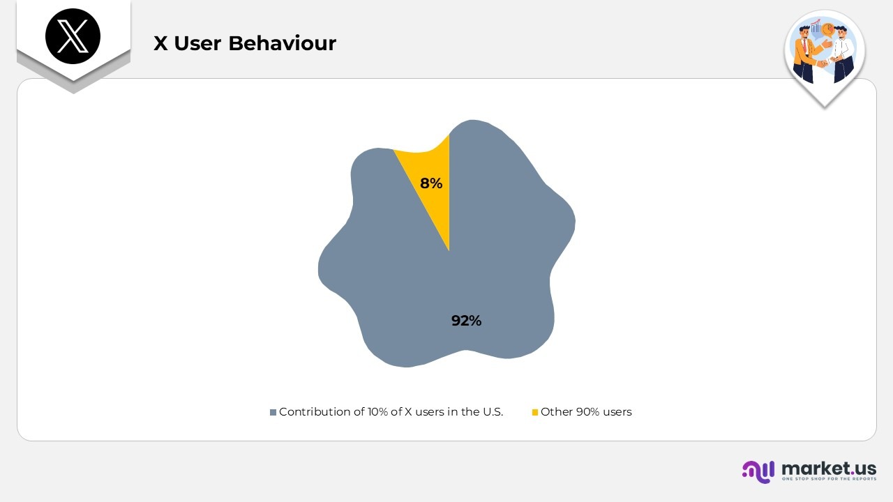 - 10% of X users in the U.S. contribute to 92% of the tweets on the platform, indicating that certain users are exceptionally active on the site.