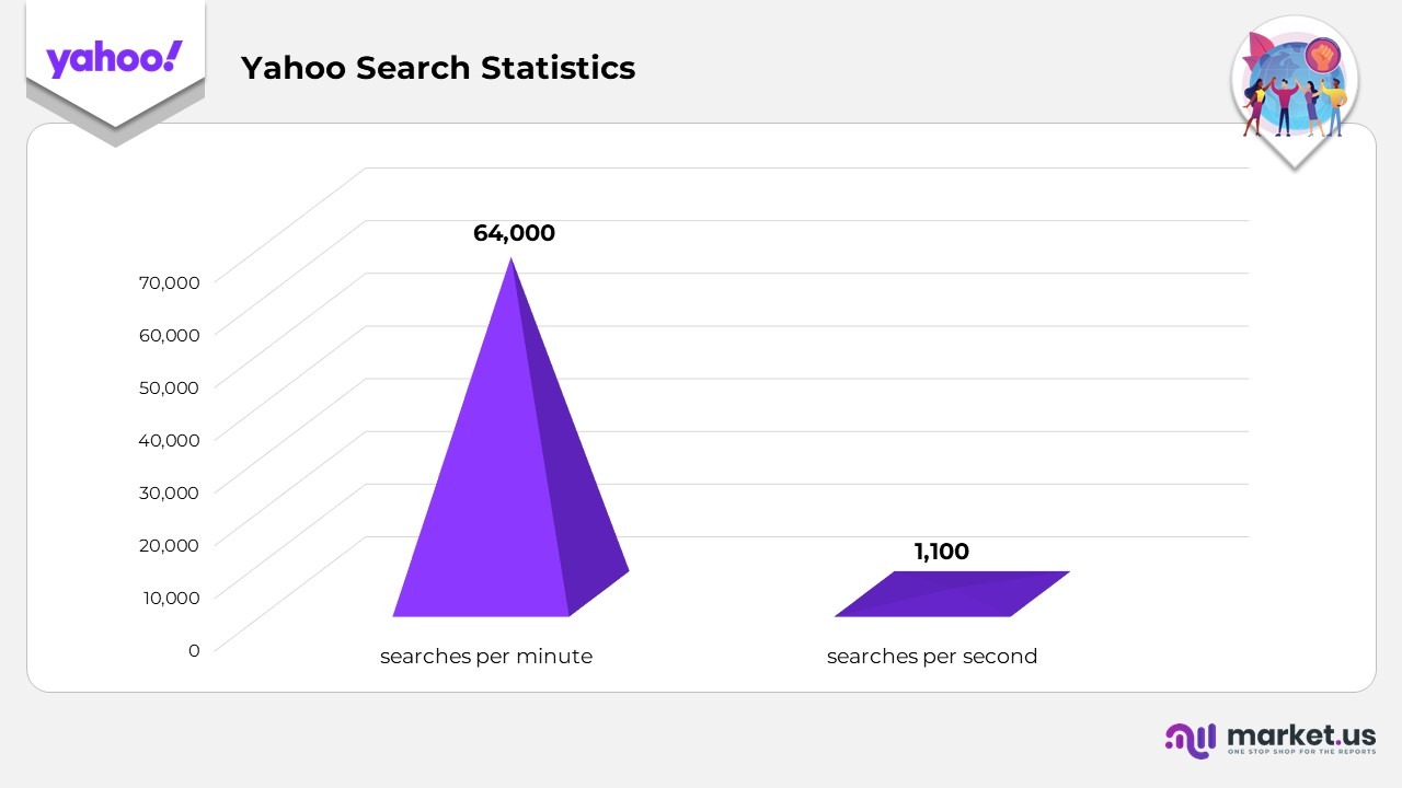 - Yahoo processes approximately 2.75 billion searches each month, translating to around 64,000 searches per minute, 1,100 searches per second, and roughly 33 billion searches annually.