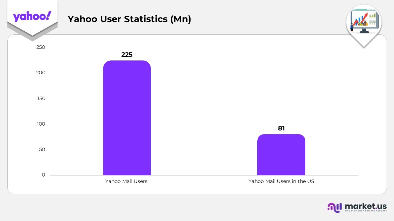 - Yahoo Mail has 225 million active users, attributed to its efficient communication features.